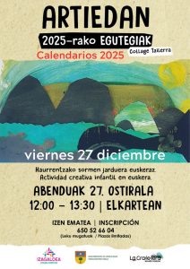 Abenduak 27, ostirala, 12:00etan Artiedako Elkartean. Izen ematea 650526604.